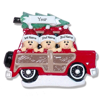 Belly Bear Family of 3 in Woody Wagon RESIN Personalized Family Ornament