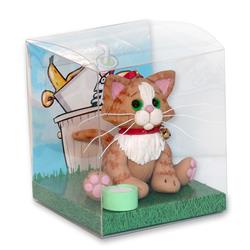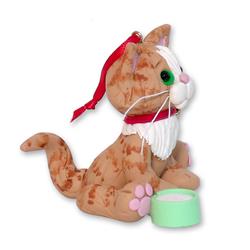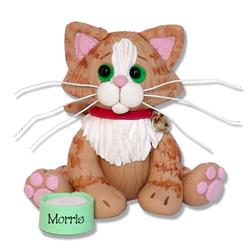 Orange Tabby KITTY CAT HANDMADE Polymer Clay Personalized Christmas Ornament -With Christmas Lights